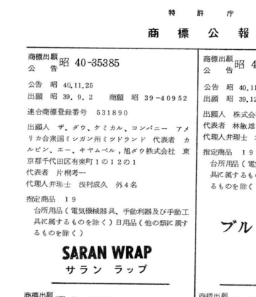 食品用ラップフィルムの商品名として広く知れ渡っている名称ですが、これは日本では旭化成株式会社が所有する登録商標です(商標登録第706999号他)。