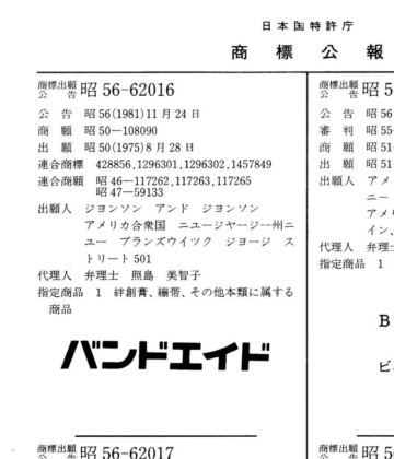 粘着テープにガーゼパットがあらかじめついた救急絆創膏のことをよく「バンドエイド」と呼んでいますが、この名称もジョンソン・エンド・ジョンソンが所有する登録商標(商標登録第1537538号)であり、一般名称ではありません。